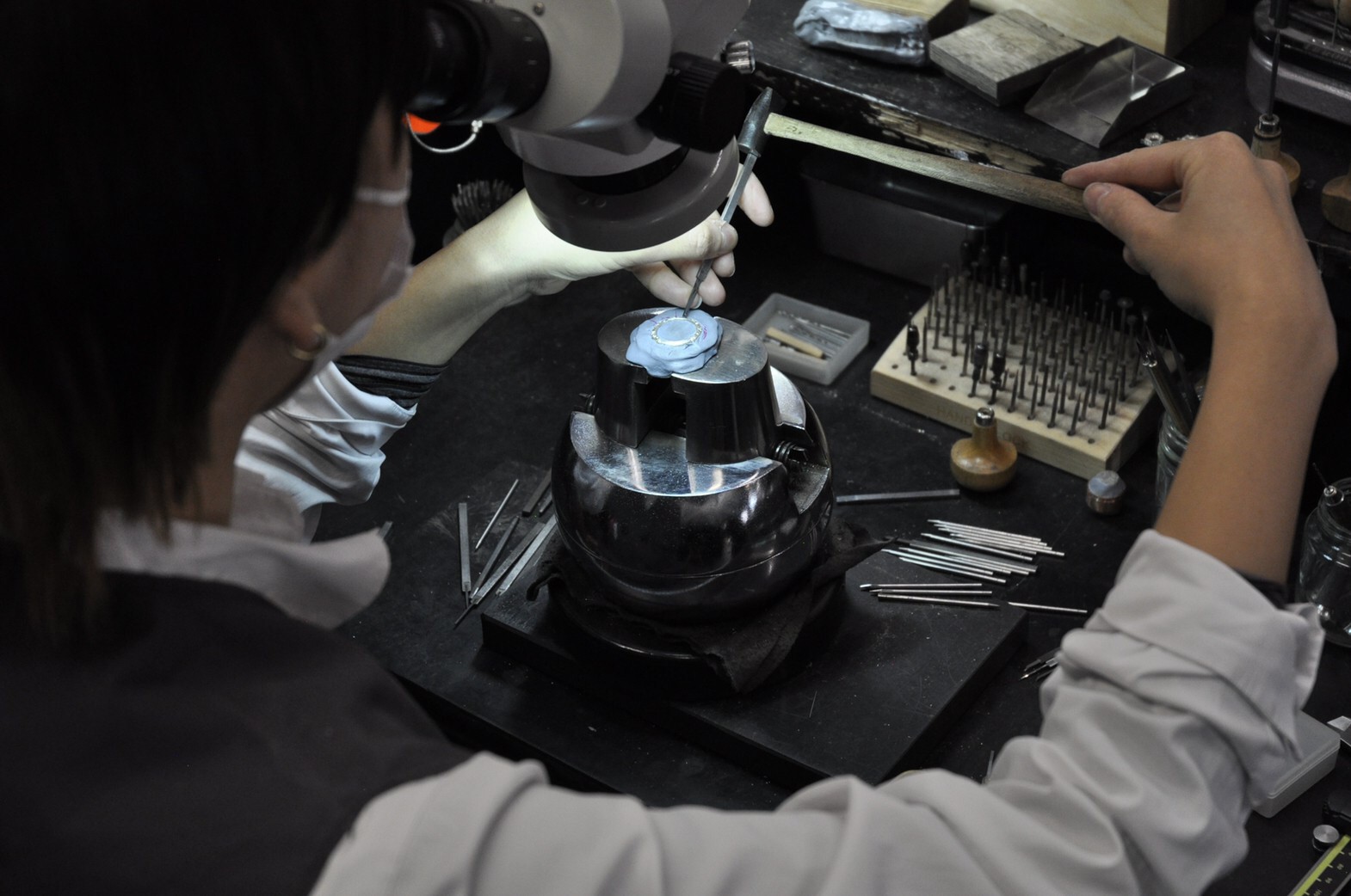 今日は顕微鏡を使って彫りました。
